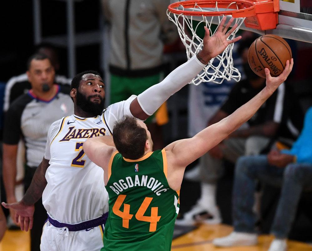 Both teams played short-handed. The Lakers played without LeBron James (right, high-ankle sprain) and Anthony Davis (right calf strain).