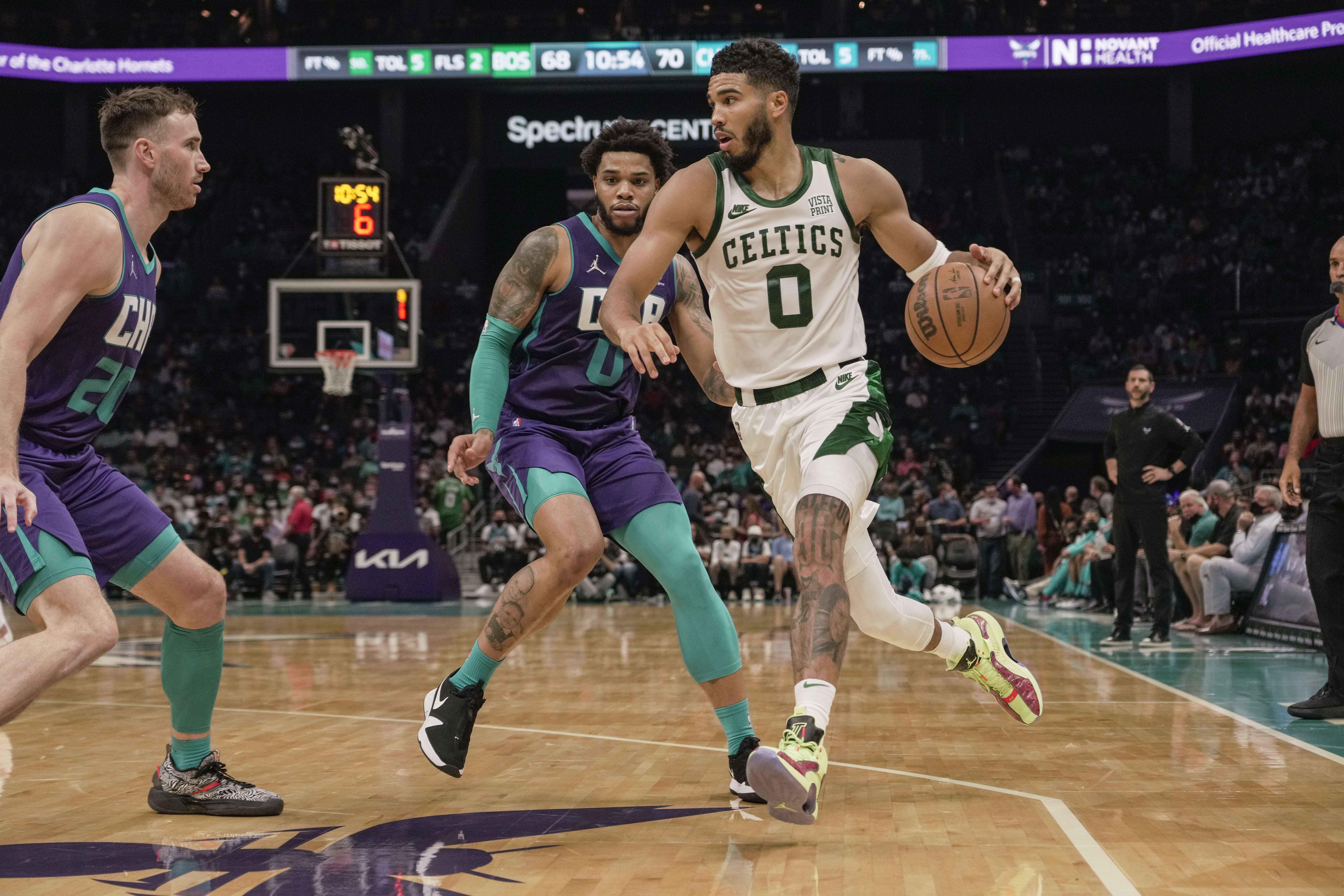 Down by two at halftime, the Hornets fell behind by six late in the third quarter before closing on an 11-2 run to lead 97-94 entering the fourth. Tatum's 3-pointer at 10:35 of the fourth brought the Celtics within one before Charlotte opened a 12-point lead.