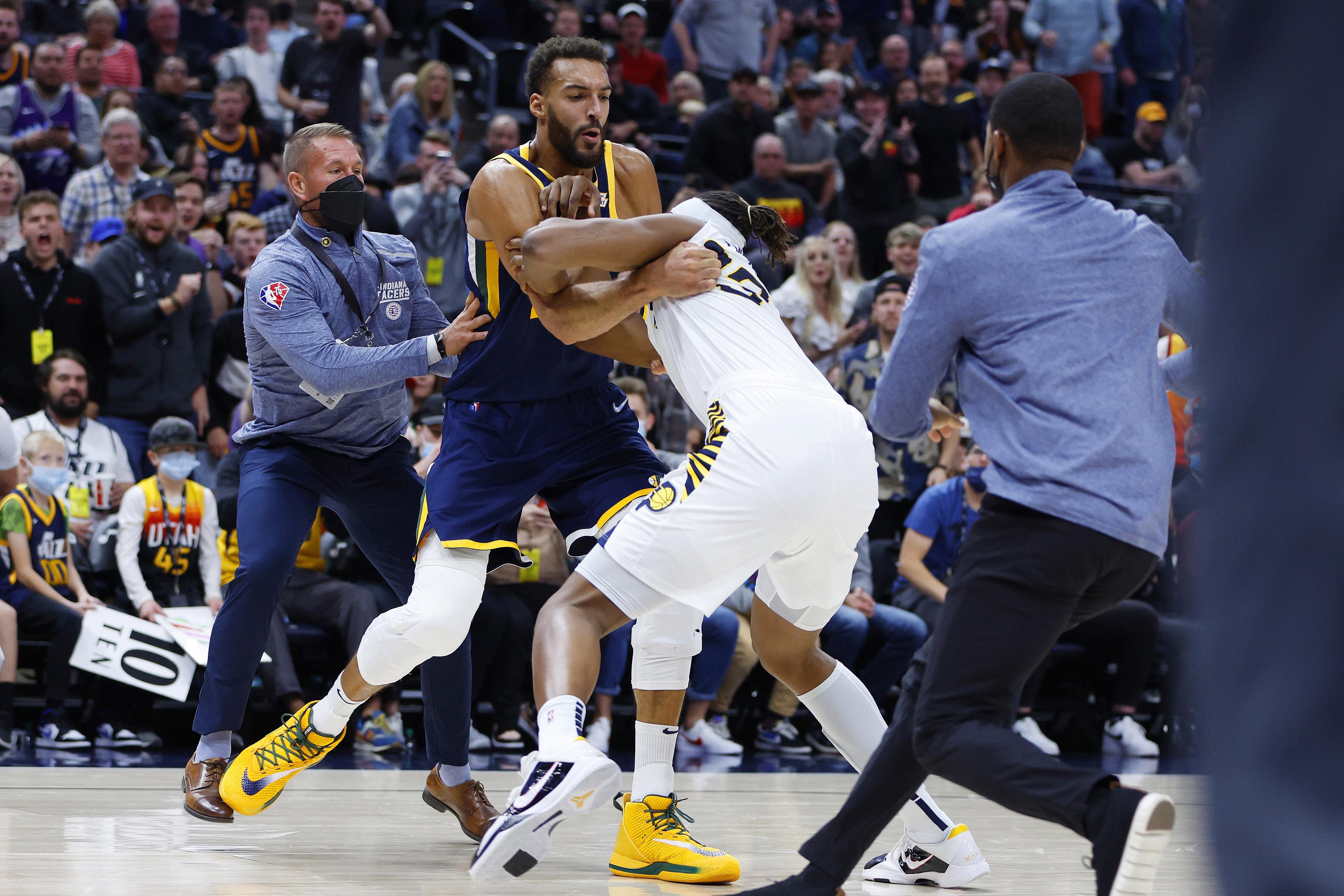 Jazz center Rudy Gobert was fined $35,000, Jazz forward Joe Ingles was hit for $30,000, Jazz guard Donovan Mitchell was fined $20,000 and Pacers center Myles Turner was docked $25,000.