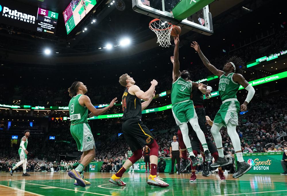 Boston was up 63-48 at halftime and led by as many as 23 points in the third quarter. Cleveland closed the third on a 15-3 run to pull within 85-73 entering the fourth.