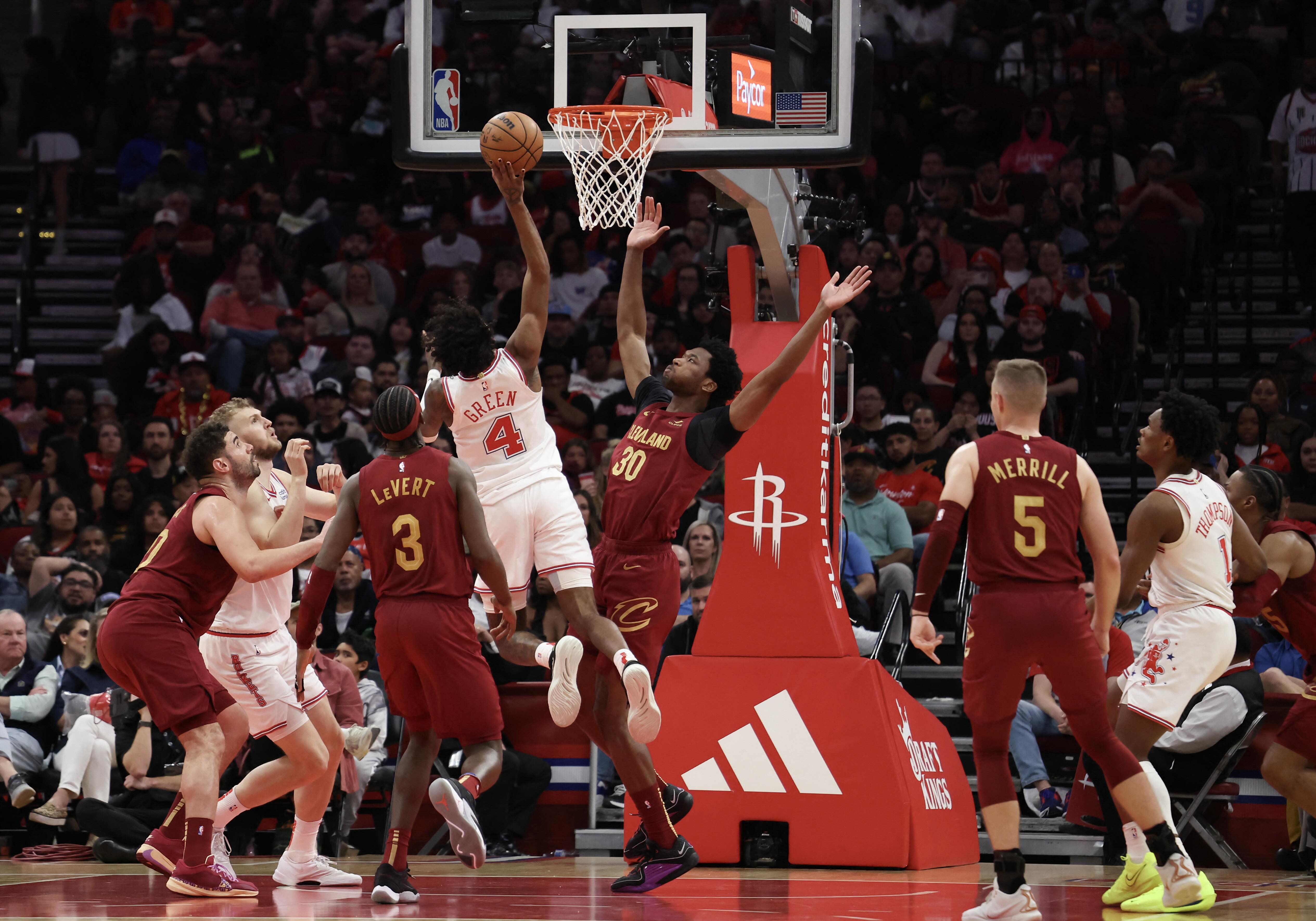 Green was the ignition for the Rockets in the first period, pouring in 14 points on just seven attempts in the quarter. There were eight lead changes and three ties in the opening frame -- Mitchell scored eight points in the first for Cleveland. The Rockets began to pull away in the second, thanks in part to Jae'Sean Tate and his eight points by the 8:41 mark.