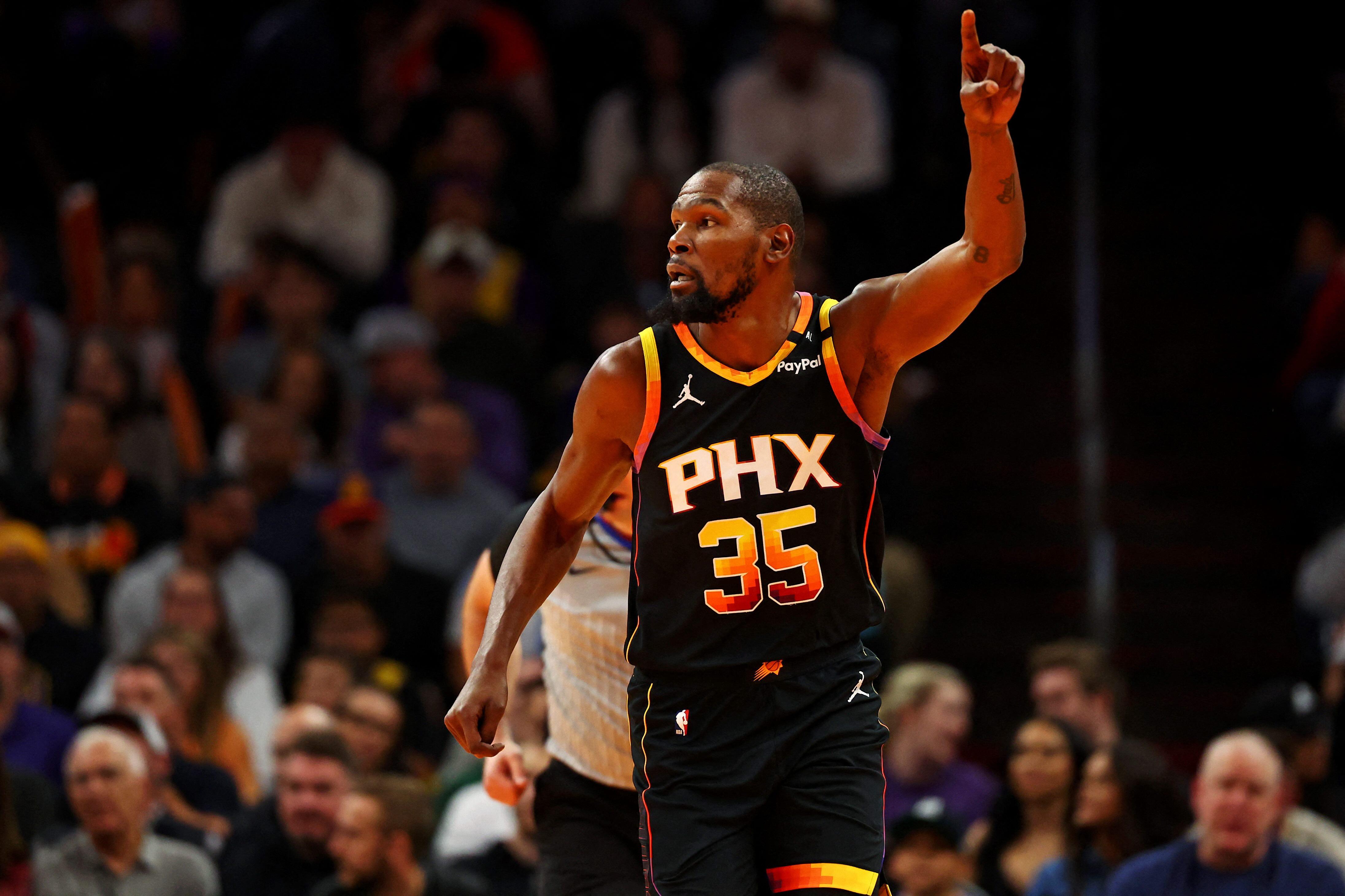 Durant, 36, was injured when he stepped on the foot of San Antonio's Julian Champagnie with 4:30 left in the second quarter.