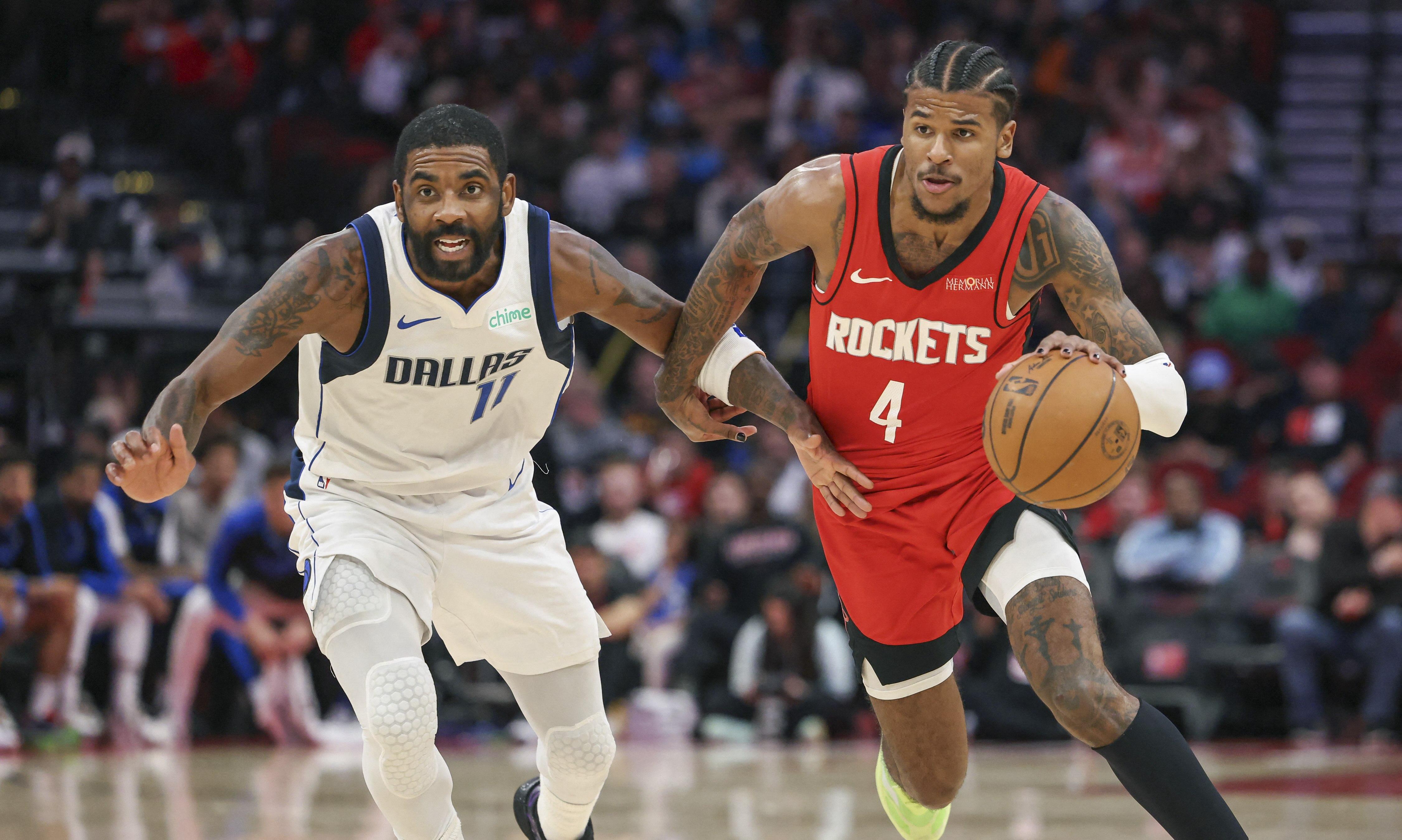 The Rockets opened the third quarter with a 9-2 burst, featuring a 3-pointer by Jabari Smith Jr. When Thompson and Dinwiddie combined for three 3-pointers to open the fourth, Whitmore responded a few minutes later with a trey that pushed the lead to 104-86.