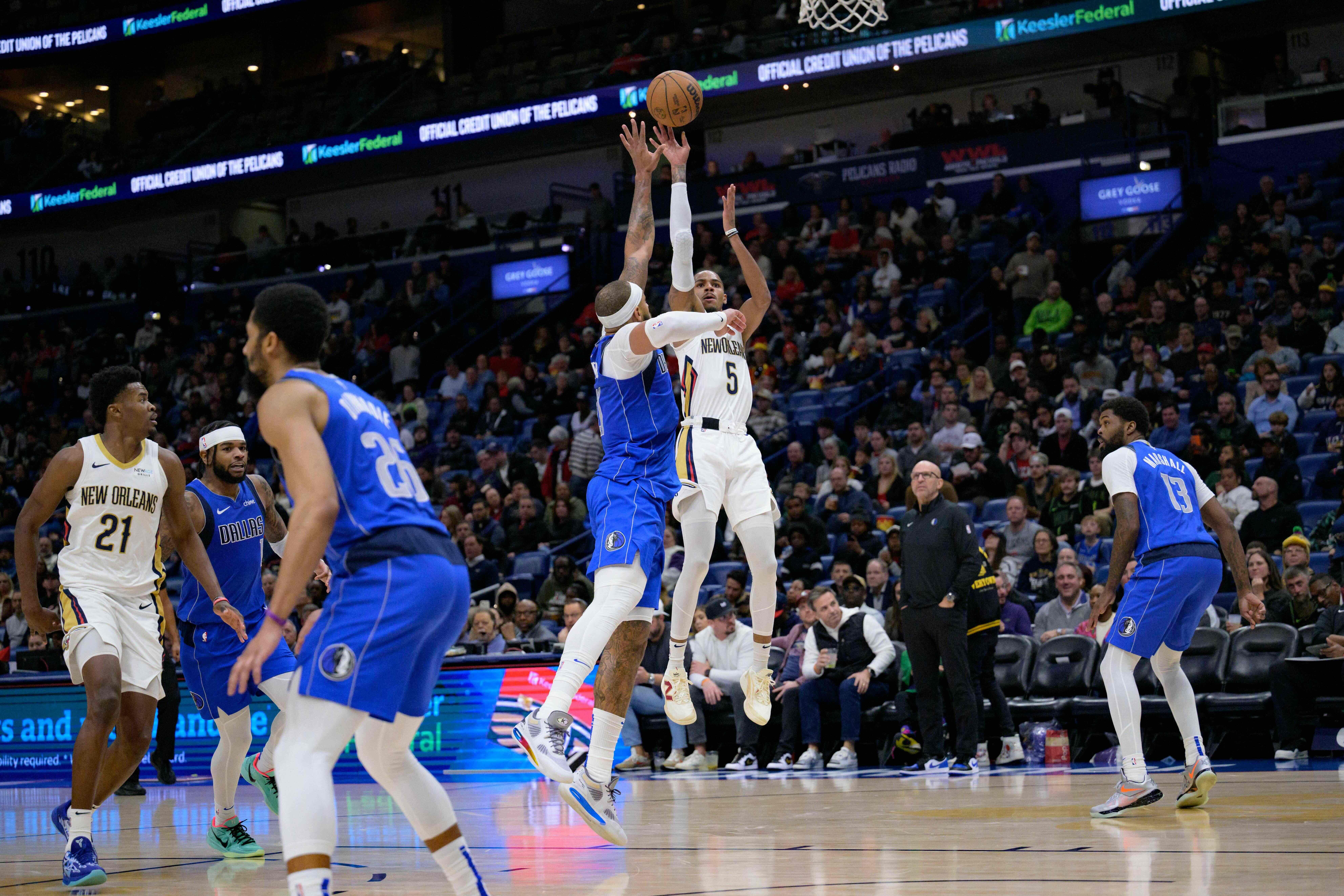 New Orleans took its largest lead of the half at 45-34 before the Mavericks pulled even at 53.