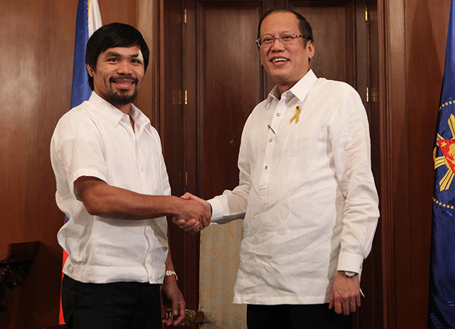 Manny Pacquiao shakes hands with President Benigno Aquino III. Benhur Arcayan