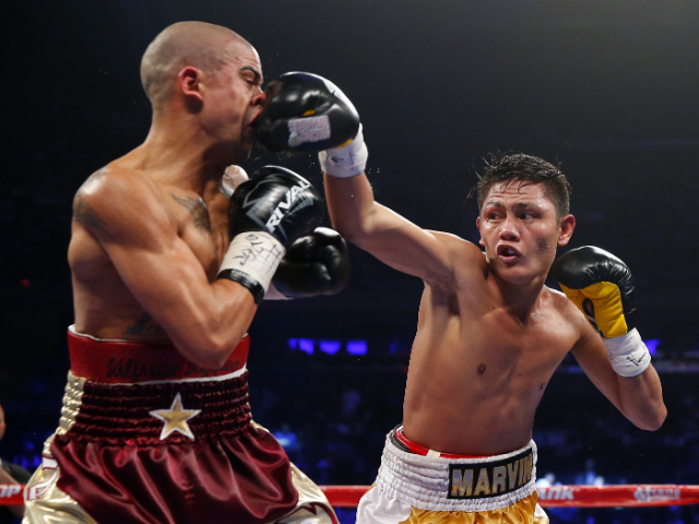 Marvin Sonsona of the Philippines lands a right punch to the face of Wilfredo Vazquez Jr. of Puerto Rico. Rich Schultz/Getty Images/AFP