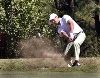 Justine Limjup of Mizuno drives out of a sandtrap during Wednesday's Fil-Championship flight of the 60th Fil-Am Men's Golf Invitational in Baguio City. Dave Leprozo