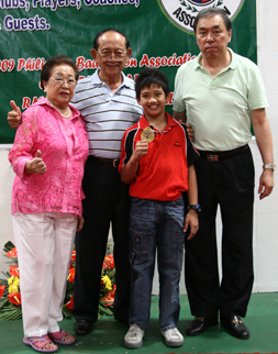Mark Alcala (third from left) poses with former President Fidel V. Ramos, Philippine Badminton Association president Amelita âMingâ Ramos and Conrado Co of Allied-Victor PCOME. GMANews.TV