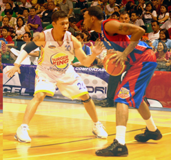 Purefoods' KG Canaleta, left, tries to go one-on-one with Burger King's Gary David. Jeff Venancio