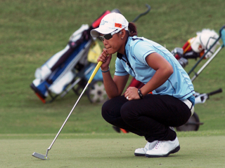 Ikeda had a wind-blown, struggling round but still managed a one-over-par 73 to maintain the leadership with a three-stroke lead against the surging Irina Gabasa, who is threatening to spoil her party at Manila Southwoods. With a 36-hole aggregate of four-under-par 140, Ikeda's lead of five in the first round at the Southwoods' Legends layout was sliced to three courtesy of the tournament-record, seven-under-par 65 turned in by the petite Gabasa. Gabasa, who hails from Cebu, fought back from a terrible six-over-par 78 with that 65 and 143 total as she shared second place with the rallying Cyna Marie Rodriguez, who carded an eagle-aided, two-under-par 70 with one round to go. "The winds blew even harder today and that got my off-tracked a bit," Ikeda told GMANews.TV. Ikeda bogeyed three of her first seven holes but came back strong with three birdies in the next eight before dropping another stroke on the par-3 16th for a 38-35 round. She struggled on with the club selection until she birdied the par-5 No. 8 from eight feet to get her groove back. "I became a little careless in the first few holes. I really have to prep myself with what the winds will dictate," explained Ikeda, who will be paired in the championship flight with Gabasa and Rodriguez.