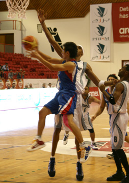 Chris Tiu defies taller defenders from Al Nasr during RP Smart Gilasâ last game in the eliminations of the 21st Dubai International Basketball Tournament. Albert Alba