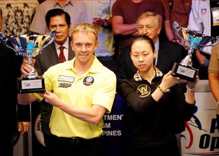 The champions of the Philippine Open Pool: Thorsten Hohmann of Germany (left) and Siming Chen of China. GMA News