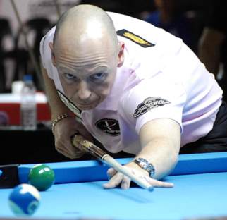 Souquet won four of the next five racks to level the score for the first time, 5-all, capped by a spectacular long bank shot that pocketed the 1 and 10 balls. Both players battled to a standstill until the last two racks. Souquet was the first to reach the hill following a dry break by Hohmann, and the veteran player was able to capitalize and ran out the remaining balls for a 10-9 lead. The German ace had a chance to close out the match in the 20th rack. Off the break, he sank ball No. 3 and had no problem sinking the No.1. But just when Souquet was about to deliver the knockout blow, the usually cool and calculating player missed the No. 2 on the corner. His shot was too thin on the cut, allowing Hohmann a chance to equalize. And equalize Hohmann did, sending the match to the final rack. Hohmann sank balls No. 4 and 8 off the break, then came up with a nifty bank shot on No.1. He had no problem sinking the remaining balls for the win.