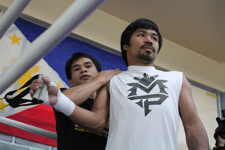 Alex Ariza, Manny Pacquiao’s strength and conditioning coach, left Pacquiao’s training camp in Baguio early Saturday morning to catch a flight later that evening to Los Angeles. He was City of Angels-bound to help Julio Caesar Chavez Jr. prepare for his upcoming fight. The departure was quite unexpected as the two best pupils of the Wild Card Gym are both in Baguio. Pacquiao will be staying an the Cooyeesan Plaza Hotel to train at the Shape Up Boxing Gym until the first week of May and Amir Khan, who is preparing for his rematch against Lamont Peterson, is training alongside him. Rumors swirled in the gym as a lot of people had their own theories as to why Ariza left but the details are still sketchy at the moment. A lot of people were wondering if there was a misunderstanding between Pacquiao’s camp and Ariza but it appears that the latter’s departure was scheduled much earlier. Late last Friday night, Pacquiao and his team members were at a local restaurant to celebrate Ariza’s birthday. The entire team was in a celebratory mood so a quarrel between the two parties is highly unlikely. However, Ariza’s departure left a bitter taste in the mouths of some of Pacquiao’s team members.