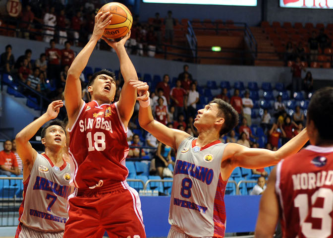 Though Arellano fought back, Dave Moralde, who was on San Beda's Team B last season, closed out the second period with a baseline lay-up to keep his side within two points, 44-42, part of the seven markers he totaled in the quarter. An early Nard Pinto basket extended Arellano's lead to two conversions, 46-44, 9:10 left in the third, but it was at that point that San Beda made their move. One-time Ateneo Blue Eagle Art Dela Cruz scored five straight to put his squad up on top, 49-46, more than half of the third left to play. Then, former Red Cub Francis Abarcar teamed up with his NCAA Juniors Finals opponent Ritchie Villaruz, as the duo drained triples to make it 55-46.