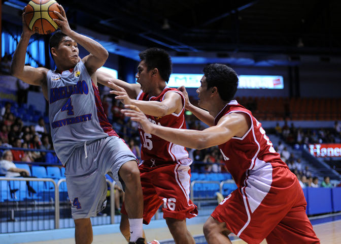 Lion's roar - Art Dela Cruz (center) led a depleted Red Lions squad past the Arellano Chiefs. KC Cruz