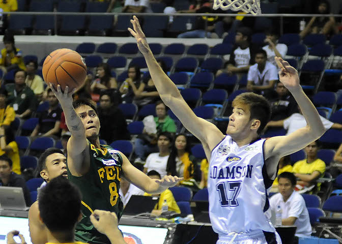 (Updated 10:48pm) Another game, another close escape by the Far Eastern University Tamaraws. The Tams survived another late scare, this time against the Adamson University Soaring Falcons, but once again emerged victorious, 65-62, Thursday at the Smart Araneta Coliseum, in the 75th season of the UAAP. "Mas kumpleto ang Adamson last year pero aggressive parin sila, so sinasabihan ko ang mga players ko,” said FEU head coach Bert Flores. After a Harry Petilos basket gave Adamson an early one-point lead, 51-50 in the fourth quarter, FEU exploded for seven straight, good for a six-point lead. The Falcons countered with four straight markers by Rodney Brondial and then a triple by Allen Etrone to put them up again by a solitary point, but the Tams turned to their closer from last game, Cris Tolomia, and he responded with five straight, 62-58. On the run, Jericho Cruz found Eric Camson with a pretty pass to make it a single possession game, but Terrence Romeo got a swipe and completed an and-one play to inflate FEU's advantage to five, 65-60, with 2:18 left. There were only 19 seconds left when Eric Camson was sent to the line, where he made both charities to get within three, 65-62. It took Adamson 2.6 seconds to give up their first remaining team foul, but the Falcons then got the steal on the succeeding inbounds. Unfortunately for them, Roider Cabrera missed on the triple try, dooming the Falcons.