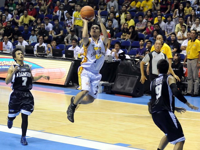 “Basta may oras, laban pa rin. Tumibay kami sa sitwasyon na yun. Marami kaming games na naghahabol kami. Yung mga players ko, hindi bumigay”, said Coach Jarencio. Abdul, who was persona non grata in the paint in the first half, surfaced in the second half. Abdul shot a paltry 5-12, but made the baskets when they counted. The first quarter was a lethargic one for both teams, as both Adamson and UST had no clear offensive options. Both teams were missing starters, as Alex Nuyles and Jeric Teng continued to sit on their teams’ benches, the former bothered by a bum shoulder and the latter nagged by an MCL injury. Nuyles, however, was in his playing jersey. By the half, the Tigers six-point first quarter lead had dissolved, after charities from guard-forward Allan Etrone tied the game at 24-all. A three-pointer by Roider Cabrera stole the lead for the Falcons, 27-24, as Adamson delivered the punches to garner them a 33-26 lead, after a buzzer-beating three-pointer by Etrone. Etrone had all of his seven points in the second half, as the Falcons outscored the Tigers 20-7, eight coming from UST’s turnovers. Ajon Mariano emerged for the Growling Tigers after going scoreless in the first half. Mariano led a blitz that powered a 9-2 surge early in the fourth quarter. Abdul, after  being kept out of the paint by Adamson’s frontline, played rugged, and finally hit his first field goal, after getting tangled with Eric Camson. Mariano scored 12 points in the third quarter alone, keeping the Adamson lead at a manageable three points, 50-47. Mariano finished with his season averages, making 12 points and seizing seven rebounds. UST drew contributions from everyone except Mariano in the first half, as UST’s slew of wingmen adequately filled in for the absence of Jeric Teng. Swingman Alex Nuyles was seen wearing his jersey, but stayed glued to the bench. The win put UST over the Ateneo de Manila Blue Eagles, heading to the second round with the top seed at 6-1, while the Adamson Soaring Falcons find themselves tied with cellar dwellers UE and UP with 1-6 win-loss cards. Abdul led UST with 18 points and 12 rebounds, followed by Mariano and Fortuna with 12 apiece. Camson put up a respectable 19 points along with 10 rebounds, tracked by fellow big man Brondial with 15 points, while swingmen Allan Etrone and Roider Cabrera added 10 each. The Tigers look for redemption next week against the only team to have beaten them, the Far Eastern University Tamaraws. “Back to zero kami, 0-0. Sabi ko sa kanila wag na nilang isipin yung standing. Isipin natin kung pano tatalunin yung kalaban. One game at a time. Ang focus namin, every game. Next week kalaban naming FEU ata, kaya bawi time ito,” added Jarencio. - RAF, GMA News UST – Abdul 18, Mariano 12, Fortuna 12, Bautista 8, Vigil 6, Lo 3, Ferrer 2, Daquioag 0, Pe 0, Afuang 0 AdU – Camson 19, Brondial 15, Etrone 10, Cabrera 10, Monteclaro 6, Rios 0, Petilos 0, Julkipli 0, Cruz 0, Cabigas 0 QUARTER SCORING: 19-13, 26-33, 47-50, 61-60