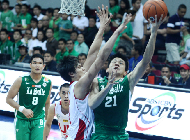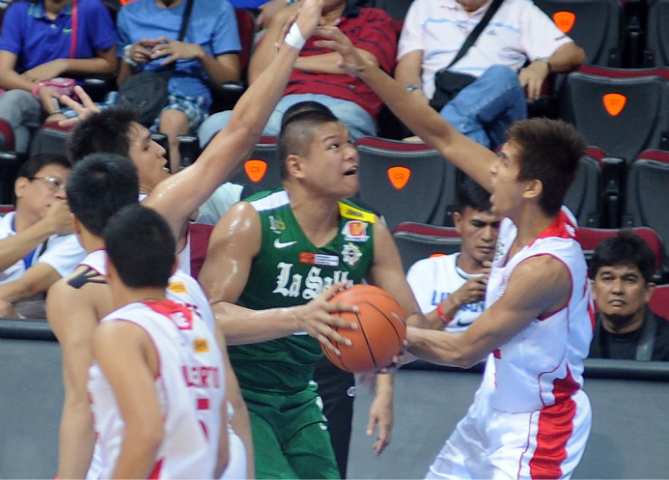 Norbert Torres (center) and Arnold Van Opstal dominated the paint for DLSU. KC Cruz