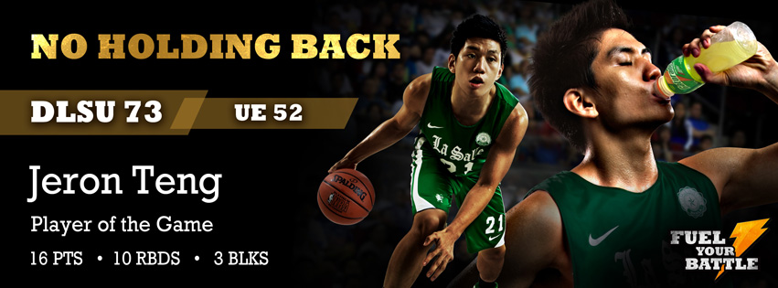 La Salle buffeted the ball inside, racking up their first three baskets off tricky plays in the paint that needed some bumping on the Green Archers’ end. By then, La Salle’s willy-nilly offense had come to life, generating six quick points for scoring dynamo Jeron Teng. UE had a bad case of butterfingers in the second half, generating most of their nine early turnovers before the second quarter came to a close. The squad from Recto managed only a timid six points after their 18-point first quarter performance, with their Taft counterparts getting the better end of the stick with regard to fouls, as evidenced by their 9/12 first half showing at the stripe. UE was outrebounded 22-32 and made none of their two attempts at the free throw line. Conversely, the Green Archers looked like a well-oiled machine in the second half, unleashing 21 points each on the latter quarters of the game. The lead allowed La Salle’s younger members, Thomas Torres and Gabby Reyes, to gather some experience. The shorter Torres finished with four points and an unusual 10 rebounds, while Reyes notched two points off a jumper. “All our games were really close and we’ve been talking about it and it gave us a chance to experiment on something else. I’m happy Gabby Reyes got to play. We’re just waiting for the proper time for him to shine”, said Coach Abanilla Teng switched to a higher gear in the third quarter, scoring seven straight points for La Salle and pitting 13 points between them and the floppy Red Warriors, whose interior defense had no body to throw at the thickset rookie from Xavier School. San Beda alum Gene Belleza matched Teng’s run with a little run of his own, spraying seven of his own as Coach Abanilla called to regroup. La Salle’s defense responded well, shutting down both Belleza and Sumang.