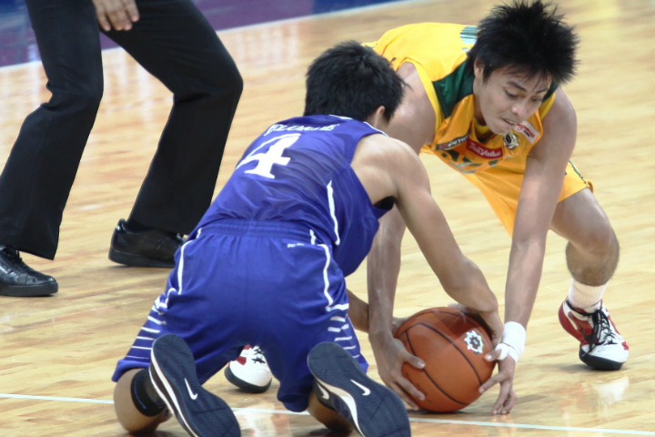 Extra hustle - Nico Elorde (left) and Terrence Romeo dive for the loose ball. Both sides displayed feats of hustle, but Ateneo simply had more in the tank late. Jeff Venancio