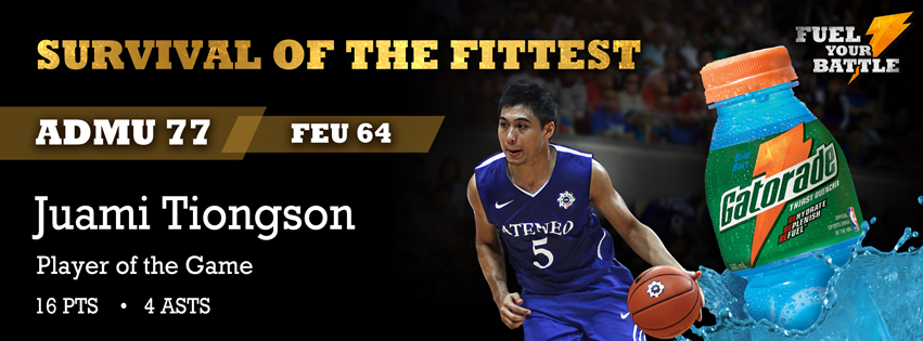 Juami Tiongson had 16 points mostly from downtown while tallying four assists. Nico Salva had 15 points and four rebounds and Kiefer Ravena notched 12 points, six rebounds, and eight assists. Greg Slaughter added 10 points and nine rebounds.