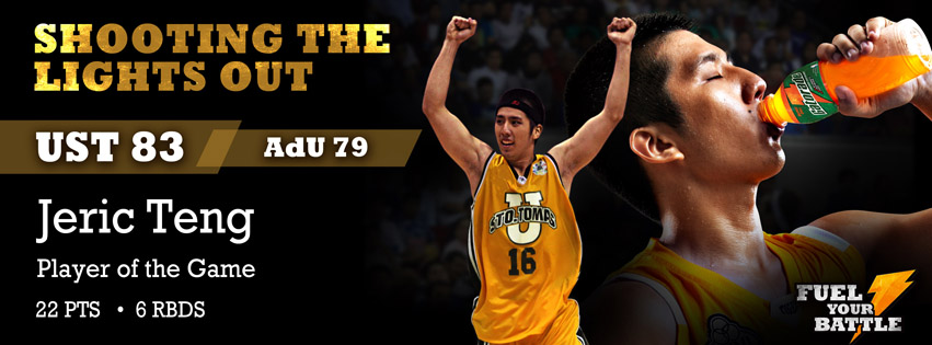 - AMD, GMA News The scores: UST 83: Teng 22, Abdul 19, Mariano 16, Bautista 11, Ferrer 8, Fortuna 7, Vigil 0, Pe 0, Lo 0, Afuang 0 ADU 79: Cruz 33, Rios 12, Etrone 11, Trollano 7, Camson 5, Brondial 5, Cabrera 5, Agustin 1, Monteclaro 0, Abrigo 0