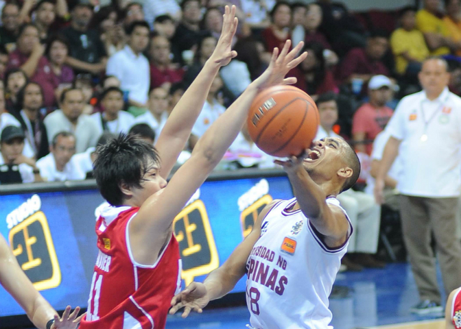 Roi Sumang (in red, shooting over UP's Chris Ball) played the role of leader to the hilt, finding his teammate for the shot heard 'round the UAAP. KC Cruz
