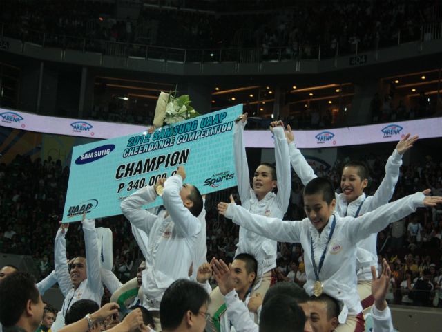 UP Pep Squad wins its third straight at the UAAP Cheerdance Competition. Roehl Nino Bautista