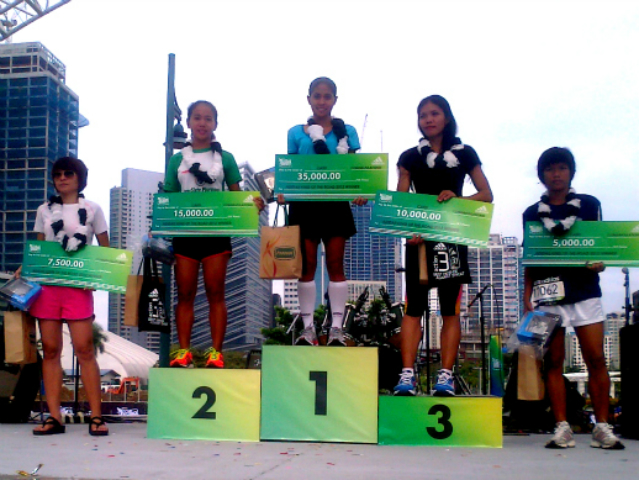 The second place finisher in both the men's and women's events went home with the P15,000 cash prize while the third placers bagged P10,000, the fourth and fifth placers earned P5,000. Kenyan Jackson Chirchir, who last week topped the 21K event of the 2012 Rexona Run, posted another victory, this time in the 10K event with a winning time of 32:15. Finishing second was Richard Solano (32:20) and Andrico Mahilum (37:12) placed third. In the women's 10K, Filipino runners Luisa Raterta (42:39) and Michelle de Vera (45:24) relegated Kenyan runner Susan Jemutal (47:33) to third place. Like Chirchir, Raterta went home with the top prize worth P15,000 while the second placers of both categories bagged P10,000 and the third placers P7,500. Meantime, Michael Balong (16:49) topped the men's 5k event, finishing with a 16:49 clocking while Michael Villamor came in second with a time of 16:50. Wenie Basalo placed third with an 18:16 clocking. In the women's 5K event, Floredeliza Donos submitted a time of 19:16 to top the event. She was followed to the finish line by second placer Antonella Zanatti (21:05) and third spot finisher Jocelyn Galo (22:03).