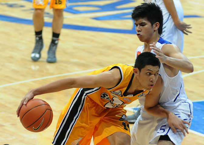 Kiefer Ravena (right) had been held in check in the first half by Kevin Ferrer (left), but the former Rookie of the Year exploded late, hitting the dagger shot. KC Cruz
