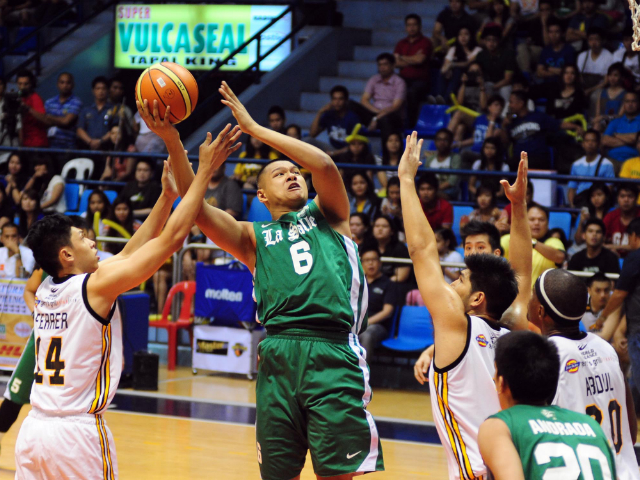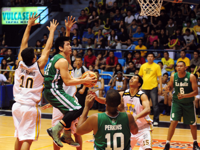 (Updated 6:57pm) Just one of the two Teng brothers were going home with a win, and although Jeric was on a scoring tear, it was the younger Jeron and his wily De La Salle Green Archers squad that came out on top. Rookie Jason Perkins scored 17 points and hauled in 13 rebounds, while sophomore Gabby Reyes added 13, to give De La Salle a 73-67 win over the PCCL champions University of Santo Tomas Growling Tigers, Saturday at the FilOil Flying V Arena, in the second opening day game of the 2013 FilOil Flying V Hanes Preseason tournament. DLSU went on a 13-2 tear over the last three minutes of the final quarter, six of which were scored by Perkins. Going in, UST had held a six-point lead by the end of the third quarter, but it slowly evaporated as the Growling Tigers defense crumbled. Jeron Teng finished with 10 points in 18 minutes of action, conveting 3-of-10 from the field. Almond Vosotros also scored 10, making 4-of-9. Big man Norbert Torres was good for six points and nine boards. Both teams got off to a cold start, as neither side made a single field goal for a stretch of almost five minutes, until Thomas Torres buried a 15-footer. UST focused its defenses on Jeron Teng, while DLSU enforced a zone defense, which the Tigers slowly ripped apart in the late stages of the first, as both Jeric Teng and gutsy forward Aljon Mariano utilized their range. Triples from both players put the Tigers up by six in the first quarter, 16-10. La Salle’s guards erased that deficit early in the second quarter, as Vosotros and La Salle Greenhills standout Robert Bolick went for six straight points, until a lay-in by Mariano ended UST’s brief scoring drought. The Tigers shifted their focus to De La Salle’s guards, which stopped La Salle’s flow. The Archers then started attacking the interior, erasing the deficit with a small offensive spurt, eventually catching up with UST by halftime, 34-34. By the intermission, the older Teng already had 18 points on 5-of-10 shooting and a 6-of-6 clip from the free throw line for UST. Although UST was hitting from range, the team was a paltry 3-of-13 from beyond the arc. Mariano’s inside-outside prowess complemented Teng’s game however, as the forward scored 12 of his own. Despite getting beat on the boards by the half, La Salle relied on second-chance points, hauling down seven offensive rebounds out of their total 12, and converting them into nine markers. The Archers also took advantage of the void left by the graduation of point guard Jeric Fortuna, pressuring UST’s ballhandlers Robin Tan and Ed Daquioag to force eight turnover points off seven Growling Tigers miscues.