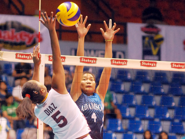 Noree Diaz (L) gets a tip past Adamson's Mylyn Paat. KC Cruz