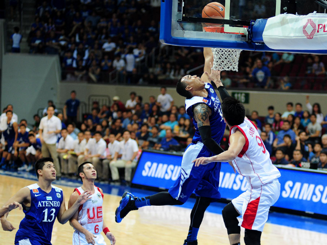 Chris Newsome (pictured) and Kiefer Ravena anchored a furious fourth quarter rally to lead Ateneo to victory against the UE Red Warriors. KC Cruz