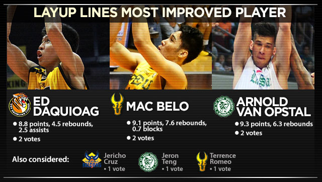 Aaron - The sophomore upped his numbers from 4.2 PPG and 2.9 RPG to 9.0 PPG and 7.5 RPG while becoming Coach Racela's most reliable big man when given the minutes, posting better averages than Anthony Hargrove or super-senior Carl Bryan Cruz.