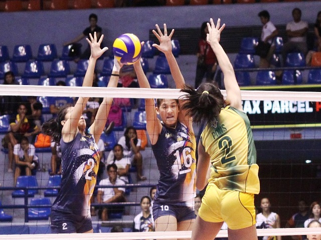 Bernadette Pons is well-covered by the double block tandem of Ivy Perez and Dindin Santiago. Jeff Venancio