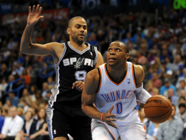 Anyway, Tim Duncan has no counterpart on the Thunder and Manu Ginobili has no mirror image in OKC. So Parker and Westbrook it is.