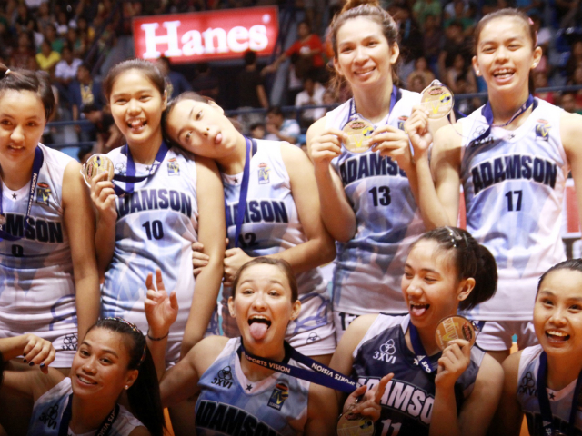 The Adamson Lady Falcons celebrate after earning a third place finish. Jeff Venancio