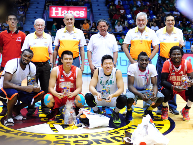 From L-R, Landry Sanjo of SWU, Art Dela Cruz of SBC, Jeron Teng of DLSU, Rod Ebondo of CEU and Ola Adeogun of SBC. KC Cruz