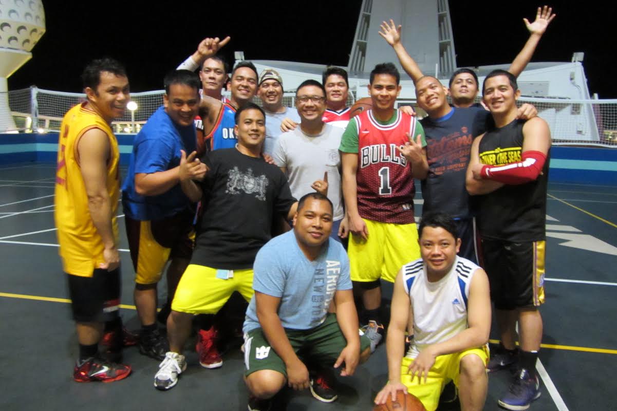 One by one they emerge from the lower deck. It’s close to midnight, the end of another long working day. Surely exhausted from doing two five-hour shifts (with a two-hour break in-between), they trot with surprising glee. Like they have 12 more hours of energy to spare. The promise of basketball can do that to Filipinos who make up the culinary crew of the Royal Caribbean cruise ship Mariner of the Seas. Time, location, and situation all become irrelevant. If there’s a game, it’s the game that matters.