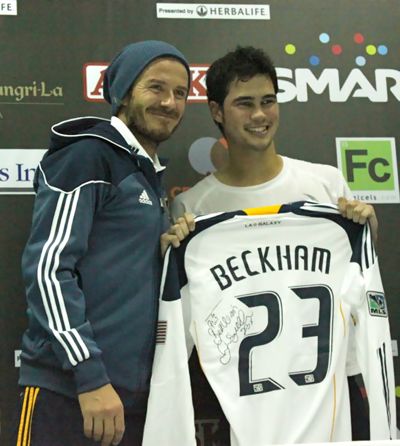 David Beckham keeps his promise to Phil Younghusband and gives him his jersey. He signed the shirt as a bonus.Mav C. Gonzales