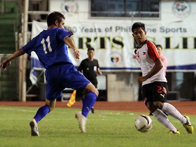 (Updated 10:12pm) On a night with plenty of opportunities but next to nil goals, Patrick Reichelt kept the Azkals from settling for a scoreless tie, connecting on a header against Guam to take a 1-0 opening day victory in the Philippine Peace Cup, Tuesday at the Rizal Memorial Coliseum. The win gave the Philippines three points in the standings. In the earlier match, Chinese Taipei salvaged a 2-2 draw with Macau, to give both sides a point each, while Guam failed to get on the board. Reichelt came on board at the 56th minute, replacing Ian Araneta. He was initially just one of the many substitutions coach Michael Weiss made throughout the night, until the Fil-German from the UFL's Global FC scored the one and only goal at the 81st minute for the home side. Missing key striker Phil Younghusband and his midfielder brother James, the Azkals struggled to find the net as Denis Wolf, and Ian Araneta failed to yield goals in the first half for the home squad. At the eight minute mark, Caligdong made a cross to the middle with nobody home to finish. The Azkals were relentless, though, as Araneta and Marwin Angeles pushed the ball at the 10-minute mark before Guam cleared the attempts. It was at the 21st minute when Araneta threatened to break the deadlock for the Azkals, but the Airman's first attempt went wide to the left. Araneta had another chance when Caligdong fed him from the corner, but the veteran forward's header went wide to the right. Guam, too, had several attempts early, but Edward Sacapano proved that he was a worthy alternative to Neil Etheridge. Sacapano cleared several ground balls from Guam, including a dangerous challenge at the 24th minute that saw the keeper charging towards Reyn Johnson. At the 33rd minute, a Guam handball gave the Philippines a chance for a free kick, but Carli De Murga's attempt sailed high to the left. The Azkals stayed aggressive till the dying minutes of the half, as a Wolf and Christaens two-man game sent a cross to a waiting Bahadoran at the right flank. Guam's goalkeeper Douglas Herrick however, sailed in to intercept the ball before Bahadoran had a clear shot. At the 40th minute, Bahadoran decided to take matters into his own hands, but Herrick's quick hands ended in a deflection for Guam. Just before the halftime whistle, the Philippines found Caligdong on the left. In an attempt to get past the towering Herrick, Caligdong flicked the ball up too high, as the hosts settled for a 0-0 draw with the visitors at the half. After the break, Guam got more aggressive on the pitch. The visiting squad pushed forward to get the team's first corner kick at the 50th minute, but Mark Cargualaf's long attempt went wide. Guam carried on, as Jonahan Romero went for another shot at the 52nd minute, but it went straight to the arms of the Azkals keeper. Not to be outdone, the Philippines continued to share the ball well, as Wolf, Demitrius Omphroy, and Carli De Murga pushed forward. De Murga served Araneta from the right flank, but the latter fell to the ground for another unsuccessful attempt. After Reichelt was fielded in for Araneta at the 56th minute, the Azkals continued to stay in the hunt for a goal. Wolf served De Murga for an open shot that went straight to the keeper at the 60th minute, before Omphroy fed Reichelt for a shot that sailed high. OJ Porteria came in for Chieffy Caligdong at the 70th minute, as Wolf and De Murga continued to tag-team, looking for a conversion. Wolf pushed ahead at the 73rd minute, before passing back to a waiting De Murga who shot wide to the left this time. Guam keeper Herrick continued with his superb goalkicks, with one yielding a chance at the 73rd minute for the visitors. De Jong tried to cover a charging Guam squad, but Sacapano caught the ball before any semblance of an attempt could materialize. Replacement Porteria gathered himself at the 78th minute for his own crack at the goal, but his attempt flew wide to the left through two defenders. The visitors threatened yet again at the 78th minute, as Jason Sabio headed the ball clear. The Philippines countered as Lexton Moy found himself in the middle, but the shot went high right to add to the home team's frustrations. With time running out, the Philippines made use of another corner kick to salvage a win against a much-lower ranked squad in Guam. The visitors failed to clear the ball, allowing Reichelt to head in a goal for the lone difference in the match at the 81st minute. The Azkals made one final substitution late in the match as Marvin Angeles went in for Omphroy. The Philippines then took care of the ball until the final whistle for the 1-0 victory. The Philippines will play Macau next on Thursday before facing Chinese Taipei on Saturday.