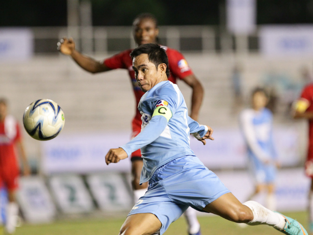 Tating Pasilan of Green Archers United aims a kick against Pasargad FC. Mark Cristino
