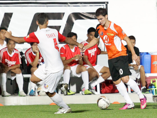 Mark Hartmann scores the first of three Loyola Meralco goals. Mark Cristino