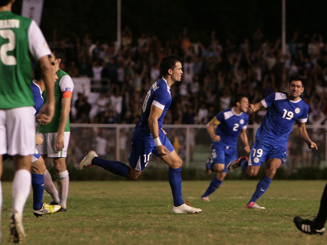 (Updated 10:28pm) Phil Younghusband hit a missile of a shot at the 67th minute and it was enough to lift the Philippines out of the qualification phase of the 2014 AFC Challenge Cup as winners of Group E, following a 1-0 win over Turkmenistan, Tuesday at the Rizal Memorial Stadium. It was a clash between two of the highest-ranked teams in the AFC Challenge Cup, with Turkmenistan, 140th in the world, meeting the Philippines, 145 in the latest FIFA rankings. Going beyond qualification, the Philippines was also battling for history, and revenge. In both occasions the two nations have met prior, Turkmenistan has won, first, a 5-0 thrashing back in the Challenge Cup Qualifiers in 2009, followed by a narrow and late 2-1 victory which eliminated the Azkals from the 2012 Challenge Cup tourney in the semifinal round.