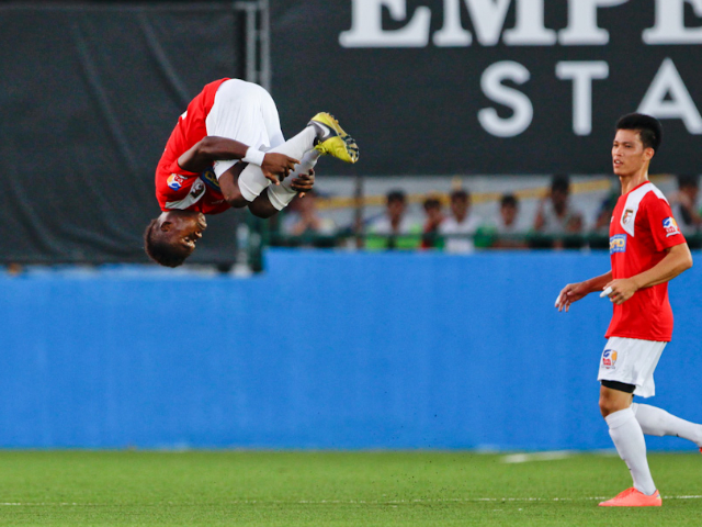 A highly controversial breaking of the deadlock had a huge impact on the game, as PSG benefited from a non-call for offside at the Emperador Stadium, Thursday night, resulting in a blowout 5-0 win against the short-handed Air Force. With Martin Doctora and Paul Concepcion sent off in the furious aftermath for shouting at the referees, the Air Force spent most of the game with only nine men. Vasseba Toure had played a through ball for Emmanuel Mbata, clearly offside, and Mbata ran over the ball so as not to touch it, with Younesse Yaogo latching onto it instead. The Air Force defense and goalkeeper stopped, allowing Yaogo to tap in, as the referee ignored the linesman’s flag, with even Yaogo waiting several seconds to look back and wait for the referee to blow his whistle. However, the referee allowed the goal, as he deemed Mbata was not interfering with play. Down to nine men, the Air Force were bombarded by PSG, the next breakthrough coming in the 44th minute as Glenn Bulaquina gifted PSG a second goal with a weak backpass. Emmanuel Mbata stole in to round Dolloso and score. After the break, defensive errors were again a problem for the Air Force as Vince Braga mis-controlled Mbata’s shot which had rebounded off the post, allowing Toure to tap in for PSG’s third in the 58th minute. The fourth then came in the 87th minute as Mbata broke through again to calmly slide in his seventh of the season, followed by Charles Ujam’s shot firing through the keeper to wrap the 5-0 win up in injury time.