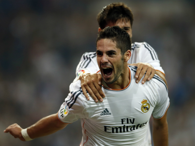 New Real Madrid signing Isco celebrates his goal. Sergio Perez / Reuters