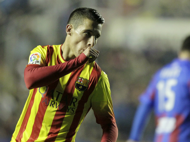 Barcelona's Cristian Tello celebrates the first of three goals against Levante. Heino Kalis / Reuters