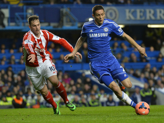 New Chelsea player Nemanja Matic (R) challenges Stoke City's Marko Arnautovic during their FA Cup match. Toby Melville / Reuters