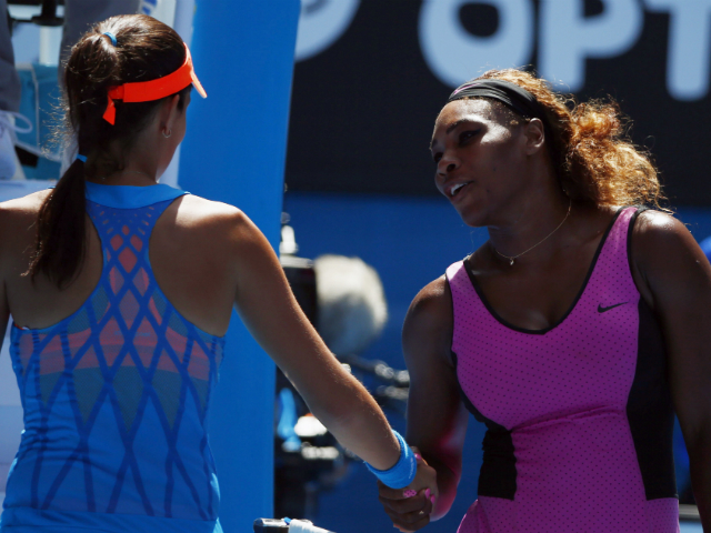 Ana Ivanovic (L) of Serbia shakes hands with Serena Williams of the U.S. after winning their women's singles match at the Australian Open. Petar Kujundzic / Reuters